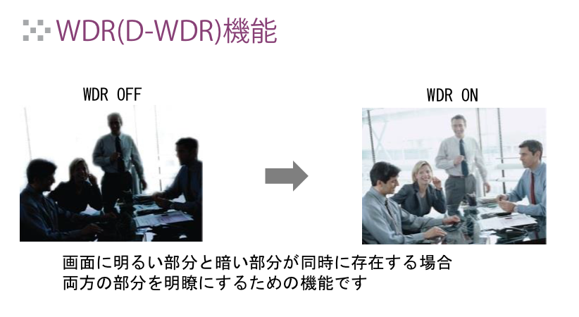| 逆光補正 | OFF/バックライト補正/ハイライト補正/WDR |